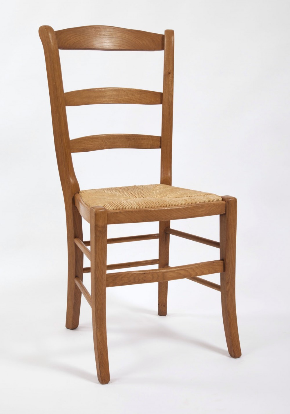 Chaise haut dossier ceinturée en chêne merisier ou noyer