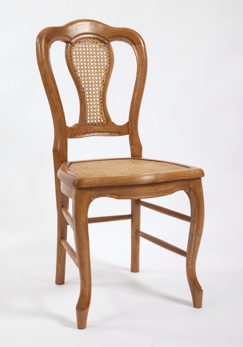 Chaise de salle trèfle canné et dossier canné en chêne, merisier ou noyer